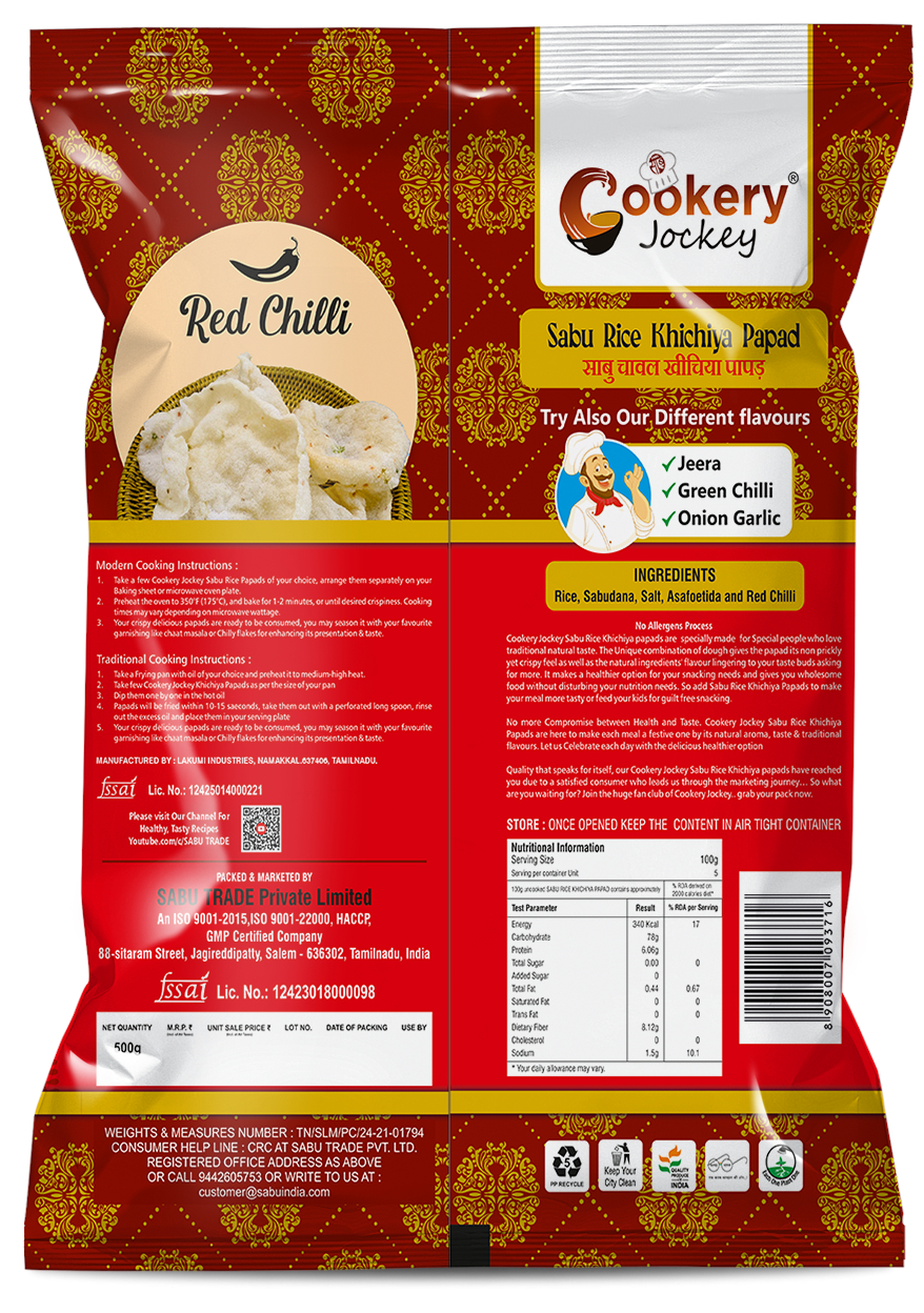 Cookery Jockey Sabu Rice Khichiya Red Chill Papad