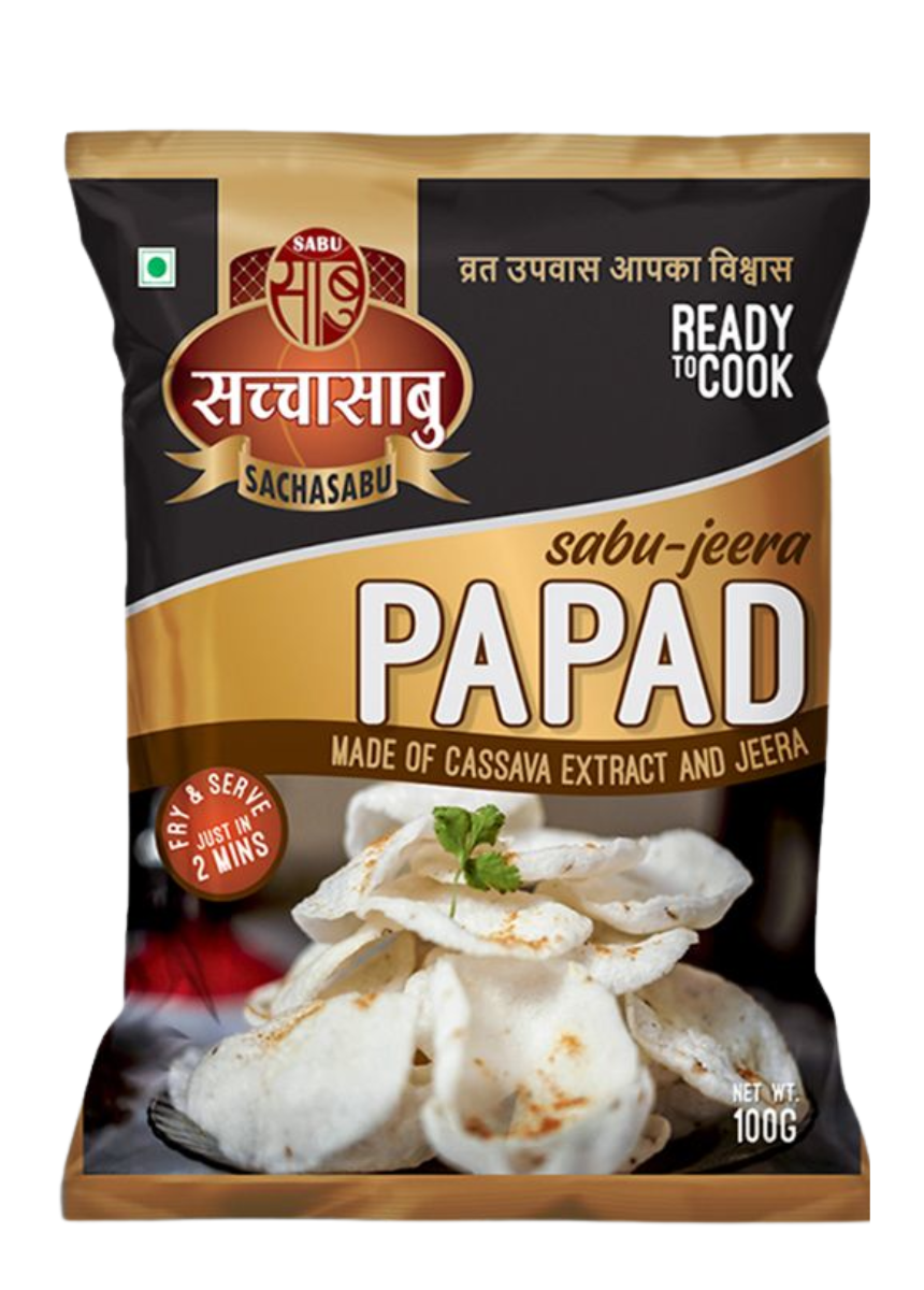 The whole process of converting Tapioca root to Sabudana papad is done manually, which needs lots of care if the quality when reaching the consumer has to be flawless. The ultimate consumer benefits in taste, aroma, expansion and total count of papads per weight. There are a few processed food products on this earth which come with the purity of nature and good health. Our Sachasabu Jeera Sabu papad is one amongst them.